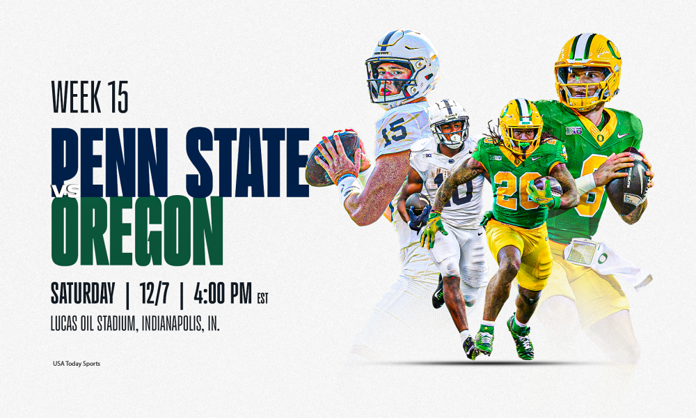 On Saturday, December 7, No. 3 Penn State will travel to Lucas Oil Stadium in Indianapolis, Indiana, to take on No. 1-ranked Oregon in the Big Ten Championship game.